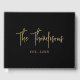 Apresentando nosso livro convidado personalizado sobre caligrafia elegante, exuando elegância e sofisticação modernas. Este maravilhoso livro de hóspedes apresenta texto manuscrito em chic em um roteiro de caligrafia de eterno, adicionando um toque de refinamento ao dia do seu casamento. Criado com um design durável de capa dura, este livro de hóspedes serve como uma bela guarda para preservar as memórias do seu dia especial. Com opções de personalização para seus nomes e data de casamento, torna-se uma recordação personalizada da sua história de amor. Seja usado como livro de recepção ou como livro de fotos convidadas, ele fornece um excelente pano de fundo para capturar mensagens sentidas e desejos de seus convidados. Projetado em um esquema clássico de preto e ouro, nosso Elegante Livro de Convidados do Script de Caligrafia complementa sem esforço qualquer tema de casamento ou decoração. Não é apenas um livro de hóspedes; é um símbolo do amor e alegria compartilhados no dia do seu casamento, fazer que seja uma saquê acalentada por anos.