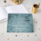 Belo livro de convidados de casamento que tem convites e papéis de carta correspondentes.
