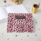 Destei’s original pink leopard print art inspired by wild cat fur patterns and natural animal textures, featuring a banner in faux foil texture where you can personalize with a title. The sample title reads "Guestbook".