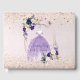 PixDezines quinceanera vestido roxo empoeirado e rosa dourado, flores em aquarela em rosa suave e roxo profundo. Nós acentuamos com borboletas em rosa suave. Fundo iridescente rosa suave com corte de gema como uma moldura de porta simbolizando uma nova porta para entrar em outra fase da vida. Todos os elementos são editáveis.