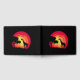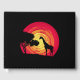 Ilustração do pôr do sol africano com sol vermelho, girafa e decoração da silhueta de árvore em fundo preto. É possível mudar a cor de fundo e adicionar uma diferente à design com sua escolha.