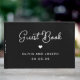 Este livro de hóspedes preto, simples e na moda, apresenta uma tipografia branca, estilo vintage e um coração correspondente. Um olhar elegante e clássico minimalista que ainda é único e contemporâneo.