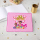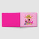 Ilustração de uma adorável menina vestida de rosa, com cabelo em pães com arcos rosa e princesa tiara. Cercado por brinquedos e com balões cor-de-rosa e dourados acima com estrelas e faixa lua. Bonito presente para esperar pais, chás de fraldas, revelação de gênero ou presente de aniversário de bebês.