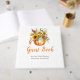 Rustic bridal shower guest book with a pumpkin flower bouquet of sunflowers and foliage. Perfect for an autumn fall bridal shower. The words can be changed to suit your own details or requirements