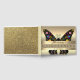 Rico, elegante e adorável borboleta preta com ornamentos florais coloridos mexicanos em combinação com na moda, vidro, fundo de folha de ouro de luxo e fundo de ouro brilhante e tenda. Livro de convidados da Quinceanera, único, moderno, caprichoso, com monograma feminino.