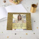 Na moda, elegante, única borboleta transparente dourada na frente, combinada com foto personalizada da garota e brilhante, dourada do lado de trás. Um livro de convidados moderno, único e adorável da Quinceanera.
