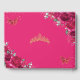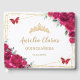 Prepare seu dia especial para os anos virem com um livro de hóspedes. Apresentando fúcsia bonito / flores rosa-quente e borboletas cor-de-rosa e douradas. Personalize-o com seus detalhes de forma fácil e rápida, basta pressionar o botão personalizar para reorganizar e formatar o estilo e a colocação do texto. Perfeito para quinceanera, Doce 16 e mais ocasiões! c) O Feliz Cat Studio