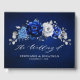 Elegante livro de hóspedes sobre o tema prata azul real, branco, elegante, com buquê elegante de azul real, Marinho, prata, cor branca pura, botões de flores e folhas verdes de eucalipto. Entre em contato comigo para obter ajuda sobre a personalização ou se você precisar de outro produto com este design.
