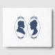 As deliciosas rosas azuis e brancas com sotaques estilo Bridgerton Regency rodeiam duas camas clássicas de uma fêmea e do outro macho, todas colocadas sobre um fundo branco nítido.