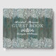 Borda de renda floral vintage elegante sobre impressão de textura de tábuas de madeira verde-musgo. Modelo personalizável de livro de convidados de casamento.