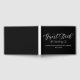Belo livro de hóspedes de ornamentados e ricos para um casamento formal ou tradicional. Começa com o Guest Book escrito em um grande script fluente. Logo abaixo, "o casamento de" está escrito na mesma fonte. Seu nome e data de casamento seguem em uma simples fonte moderna. O texto branco sobre o preto é muito moderno. A parte de trás do livro de hóspedes é negra. É muito fácil substituir o texto de amostra pelo seu. Esta é parte de uma coleção maior de suítes de casamento. Você deveria poder vê-lo nesta página. Se não puder, por favor, entre em contato comigo para obter o link.