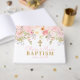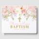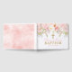 As lindas flores cor-de-rosa e pinceladas do jardim rosa adoram o cobrir deste livro de hóspedes batismo feminino. Acentuado por uma cruz falsa dourada e letra de bloco. Perfeito para uma recepção batismo.