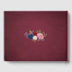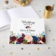 Este elegante livro de hóspedes mostra rosas florescentes em tons quentes de burgundy, rosa pálido e marinho profundo em um fundo branco nítido. A parte de trás está cheia de burgundy com um pequeno buquê no centro. Você pode personalizá-lo completamente clicando no link personalizar. Isto é parte de uma bela suíte de casamento com muitos elementos correspondentes.