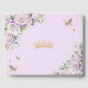 Livro De Visitas Rosas Lilases Roxos Quinceañera Dourada Floral