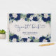 Livro de Convidados com marinho azul real e rosas de marfim, verde, folhas de eucalipto e espadilhas de ouro. O livro de convidados é manchado de amor, florescimento cardíaco, e o modelo é preparado para você personalizar com seu nome e detalhes do evento. Por favor, navegue na minha coleção de Rosa Real para coordenar convites, artigos de papelaria, presentes e dia de decoração de eventos ou, envie-me uma mensagem para criar modelos design para os itens de que necessita.