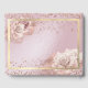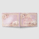 Este livro de hóspedes personalizado encantador apresenta um tema cor-de-rosa e cor-de-ouro da quinceñera. Um vestido de vestido de bola glamouroso é colocado no centro, sobre um fundo rosa macio. Uma película dourada tiara repousa sobre o vestido, com uma armação dourada correspondente. Buquês de rosas embaçados destacam os cantos, e a brilha cor-de-rosa é borrifada nas partes superior e inferior.