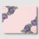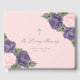Elegante livro de visitas memorial/funeral de flores roxas e rosadas com uma cruz prateada, rosas roxas e rosadas em aquarela e flores de respiração de bebê em um fundo rosado.