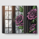 Este Livro Convidado apresenta belas rosas roxas numa janela em estilo gótico. Perfeito para seu casamento gótico ou aniversário!