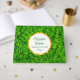 Um livro de convidados de casamento com uma design irlandesa de primavera - com um design de primavera fresco com um campo de trevo verde esbusto com pequenas gotas de água. Personalize com seus nomes e data de casamento no centro de um quadro branco com uma borda de papel dourado FAUX.