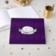Rich violet roxo livro de hóspedes, com um roxo em design roxo com faixas de nós celtas. Gráficos de uma placa de som prateado, na frente do livro, tem texto roxo pronto para personalizar, para seu dia especial.