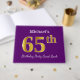 Este design de livro convidado apresenta o número normal "65º" com uma aparência falsa em ouro. Ele também apresenta um nome personalizado e um fundo de cor roxa. Pode ser usado em uma festa para alguém comemorando seu sexagésimo quinto aniversário. [~Z0000057]