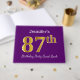 Este design de livro convidado apresenta o número ordinal "87º" com uma aparência falsa/imitada em forma de ouro. Ele também apresenta um nome personalizado e um fundo de cor roxa. Pode ser usado em uma festa para alguém comemorando seu oitenta e sete anos. [~Z0000057]
