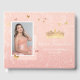 Crie seus próprios livros de visitas elegantes para quinceanera em um modelo DIY fácil em belas tonalidades ombre de rosa dourado e rosa suave. Personalize esses livros de visitas em modelo para uma festa de 15 anos/aniversário de 16 anos especial, casamento de conto de fadas, noiva princesa ou chá de bebê, ou qualquer outra ocasião especial da vida... A arte ilustrada por Raphaela Wilson inclui gráficos svg de coroas de tiaras reais, borboletas, confetes de borboletas, papel rasgado rústico e padrões de rosas em aquarela que podem ser alterados para qualquer cor de sua escolha para combinar com o tema da festa (até mesmo prata). Adicione uma foto personalizada para substituir a imagem de espaço reservado da jovem vestindo o vestido, e inclua quaisquer outros detalhes que desejar nas áreas de texto de caligrafia e tipografia moderna. "Mis Quince Años" abaixo da imagem pode ser facilmente alterado para "Sweet Sixteen", por exemplo. Se você está planejando realizar uma memorável quinceañera mexicana com um toque elegante de rosa e dourado, esses livros de visitas únicos de flores em rosa dourado podem se encaixar perfeitamente! As possibilidades criativas desses livros de visitas com foto personalizados são infinitas! Categoria: livros de visitas de casamento elegantes com foto; livros de visitas de quinceanera em aquarela; e livros de visitas de quinceanera em rosa d