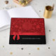 Um livro de hóspedes com um romântico padrão floral vermelho rubi e um arco vermelho de aparência. Uma mistura perfeita de opulência e romance. Uma elegante lembrança dos convidados que compareceram ao seu Dia de Casamento.