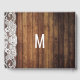 Elegante, chic, e país rústico pendurando lanternas de cordas e rendas brancas em tábuas de madeira, guia de casamento. Este design clássico e sofisticado é perfeito para o casal de competição de tendências e na moda. Personalize com sua própria mensagem na frente, assim como um monograma personalizado inicial no verso. Todas as impressão de fotos.
