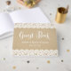O livro de hóspedes do estilo chinês apresenta um fundo castanho-kraft com design de renda branca e texto personalizado que pode ser personalizado com nomes de noiva e noivo e data de casamento.
