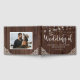 A Corda de Madeira Rústica Luz o Livro de Convidados Foto de Casamento com Formas Rústicas, com cordas de luz brilhantes e colar nos cantos inferiores. Adicione sua foto e detalhes para um lindo e romântico guia!