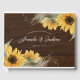 Este livro de hóspedes de girassol é encantador e personalizado para o seu dia especial. Apresentando um belo design de girassol, ele engloba perfeitamente o calor e a alegria do verão e dos casamentos outono. O cobrir é elegantemente personalizado com os nomes da noiva e do noivo, juntamente com a localização e data do casamento, fazer-o uma recordação única e apreciada. Sua estética rústica é projetada para complementar a papelaria de casamento com o tema do girassol, garantindo um olhar coeso em toda a sua decoração de casamento. Este livro de hóspedes oferece uma maneira adorável de os hóspedes partilharem as suas mensagens e os seus votos, criando um registro duradouro daqueles que celebraram esta ocasião importantíssima convosco.