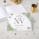 Prepare seu dia especial para os anos virem com um livro de hóspedes. Apresentando bonito flores verdes pastéis e borboletas de sage e prata. Personalize-o com os seus detalhes de forma fácil e rápida, basta pressionar o botão Editar usando a ferramenta de Design para reorganizar e formatar o estilo e o posicionamento do texto. c) O Feliz Cat Studio