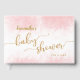 Este elegante livro convidado de chá de fraldas emparelha texto de caligrafia de brilho dourado com fundo de aquarela rosa. Personalize com o nome da futura mamãe e sua data de chá.