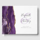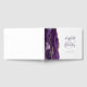 Este elegante livro de hóspedes apresenta uma cor d'água púrpura, design, aparada com falsa brilho dourado. Personalize facilmente o texto das cinzas de carvão em um fundo branco, com os nomes da noiva e do noivo em caligrafia caprichosa sobre uma grande e pálida amante roxa. Adicione texto adicional da sua escolha à frente e à coluna.