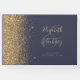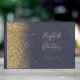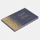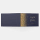 Este elegante livro de convidados do casamento apresenta uma borda esquerda de falso brilho dourado num fundo azul escuro. Personalize facilmente o texto dourado com os nomes do casal na caligrafia de manuscrito caprichoso sobre um grande e grande texto. Adicione texto adicional da sua escolha à frente e à coluna.