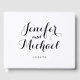 Este convite para casamento é um estilo minimalista com o tipo moderno de escrita numa paleta de cores clara, preta e branca.