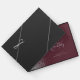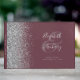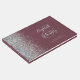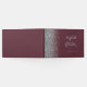 Este elegante livro de hóspedes do casamento mostra uma borda esquerda de falso brilho prateado num fundo escuro de burgundy. Personalize facilmente o texto da cinza prateada com os nomes da noiva e do noivo na caligrafia caprichosa sobre uma grande e grande mala. Adicione texto adicional da sua escolha à frente e à coluna.