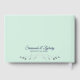 Este elegante livro de hóspedes servirá como recordação especial do seu dia de casamento. Ele apresenta um fundo verde-claro ou colorido de névoa com filtro de cinza de prata de folha fina e ornamentado e letra azul de marinho chic.