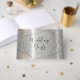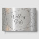 Peça aos seus convidados para o casamento que deixem uma memória tesourada neste livro de hóspedes com elegante roteiro manuscrito e um elegante fundo metálico de prata sobreposto com um delicado padrão geométrico em preto básico. Os nomes da noiva e do noivo e a data do casamento podem ser personalizados usando o modelo fornecido. Procure ID648 para ver todas as peças neste conjunto elegante.