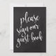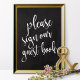 Um sinal de casamento elegante e moderno, apresenta o texto "por favor, assine nosso livro de visitas" em uma fonte de letra manuscrita extrovertida, a textura da pincelada adiciona um sentimento espontâneo e divertido. A cor do fundo pode ser personalizada de acordo com as suas necessidades e preferências, por favor entre em contato se tiver algum pedido especial.