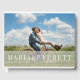 Convide seus convidados de casamento para compartilhar seus desejos e sabedoria com este livro de hóspedes, que contém sua foto de noivado ou instantâneo favoritos na frente. Seus nomes aparecem em letras brancas modernas ao longo da base em uma faixa de cobertura. Termine a aparência com texto de coluna personalizado e uma foto de sangria de cheio adicional no cobrir traseiro.