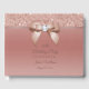 Belo Guestbook de bolsa mensageifesta de aniversario elegante para mulheres, com imagens impressas de um arco de ouro rosa glamouroso com uma gema de diamante de rocha no centro e uma fita colorida correspondente em uma brilha de ouro brilhante rosa, e um fundo comum colorido correspondente. Todo texto é totalmente personalizável para atender às suas necessidades. A cor do texto pode ser alterada. Se você quiser ajudar a personalizar seu produto ou quiser fazer a correspondência de produtos, entre em contato comigo na minha loja e eu ficarei muito feliz em ajudá-lo.