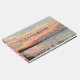Personalize este Catálogo de Convidados da Férias Beach House com o nome do aluguel. Perfeito para a cabana, lago de cabana ou aluguel de praia ao lado do oceano. Tem uma bela pintura de uma bela praia de pôr do sol e de tirar o fôlego. Fácil de personalizar com suas próprias informações. Design pelo Emporium de Jenn.