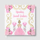 This sweet sixteen guest book features an elegant gold frame, a beautiful princess with blonde hair and a pink dress, flowers and a balloon. This is perfect for a sweet sixteen birthday party.
