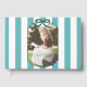 Teal green graduation with trendy stripes and ribbon bow. Photo template via Pixabay licensed under CC0 and must be replaced with your own photo.