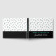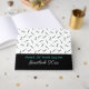 Guestbook para cabeleireiro ou estilista de cabelo com padrão de pentes e tesouras em preto e turquesa, sobre fundo branco. Adicione o nome do seu salão e o ano ao cobrir e à coluna.