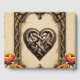 The heartbeat of the ancient gods: A magical Celtic frame. An ornate, Celtic-inspired frame with complex knot patterns in gold and brown tones. A spade-shaped ornament with a knot is located at the top, and a heart-shaped knot is located at the bottom, flanked by vibrant orange and red flowers. The design combines tradition, strength, and vitality.