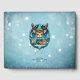 Um belo estilo de desenho animado rende elfo com cabelo vermelho e olhos grandes. Ela veste uma fantasia de elfo verde e vermelho com um chapéu pontiagudo e está cercada por duas renas menores. O fundo é uma cena de inverno esbranquiçada com neve, pinheiros e um céu noturno estrelado. Este design bonitinho vai te deixar no humor para a época de Natal