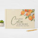 Celebre a chegada do seu bebê com este elegante livro convidado que apresenta adoráveis decorações laranja. Este livro de hóspedes é perfeito para qualquer tema de chá de fraldas cítrico.